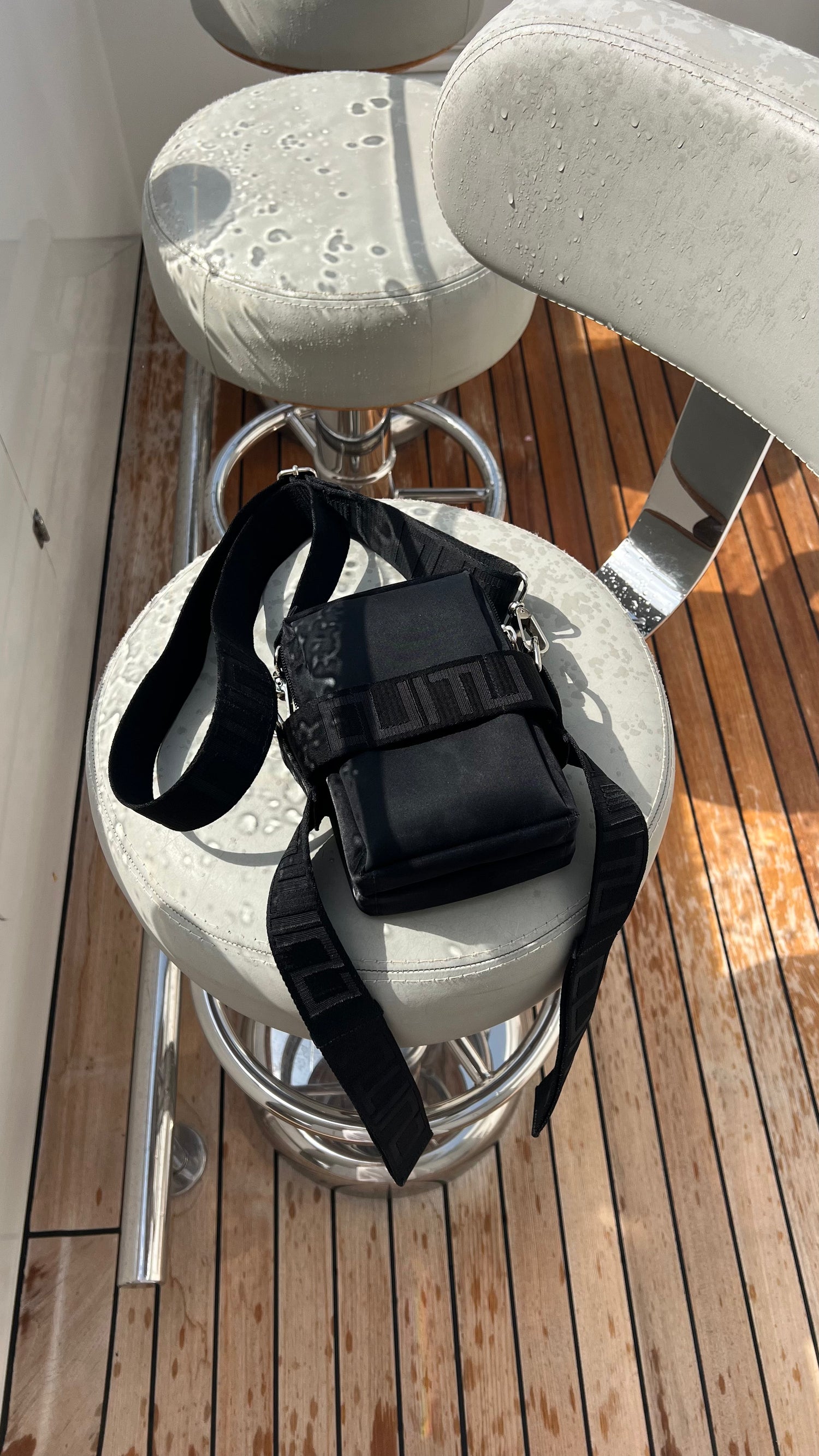 Detachable and adjustable logo strap. Wear this bag as a crossbody, shoulder bag, or belt bag using the belt loop on the back. The strap can also be worn separately as a belt.