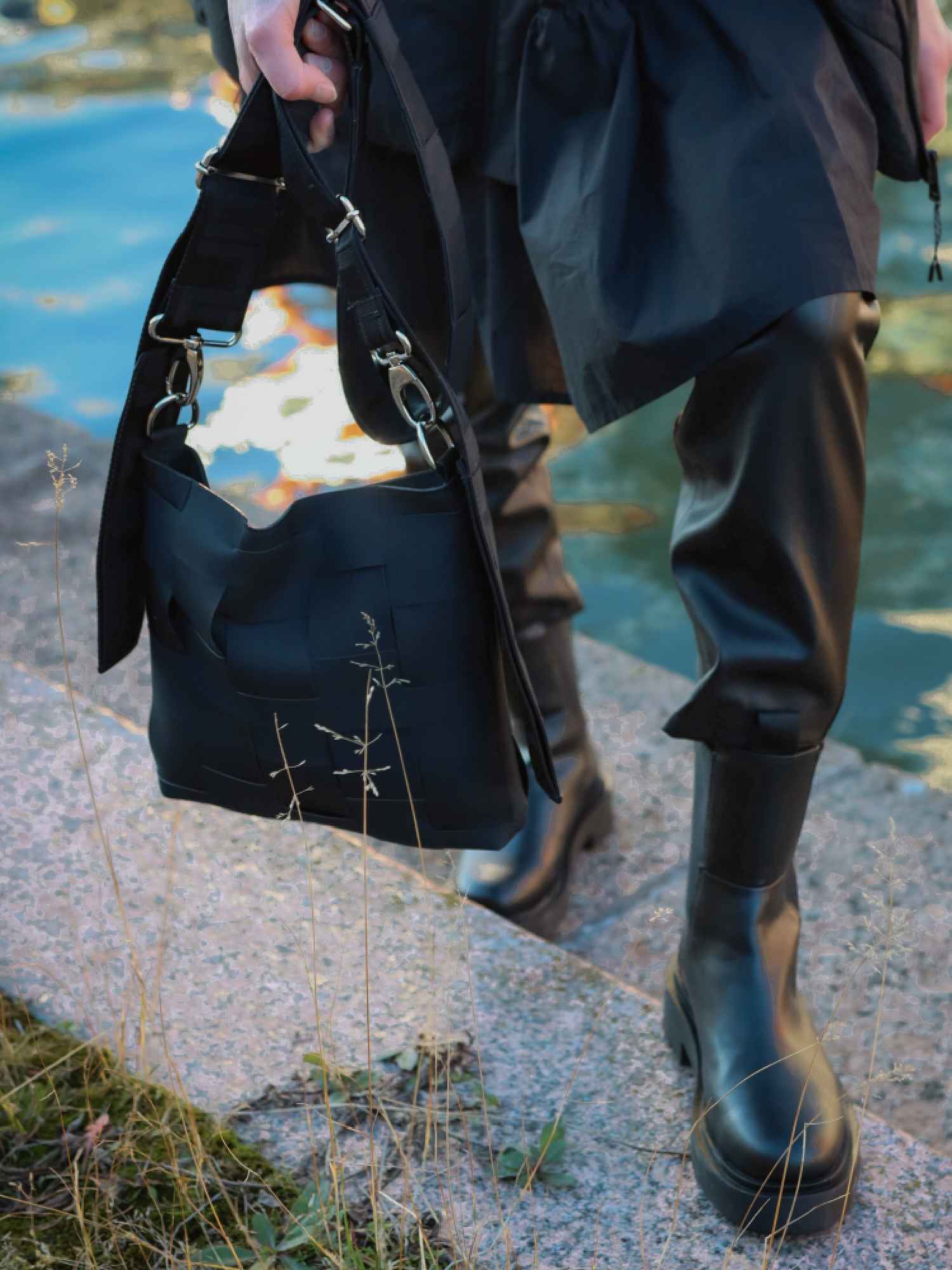 We design based on the pre-production leftover waste materials. These materials may vary and come in different colors, sizes and shapes. By being innovative in terms of design, we are able to, for example, utilize even the smallest fragment of cutting surplus to achieve zero waste. There are more than 20 pieces in some of our products, so they are designed like a puzzle. In addition, we use our own production leftovers to make small components for our own products, such as labels. We strive to create pieces that capture the essence of style without compromising sustainability. The functionality, timelessness and high quality of our items disrupts the seasonal nature of the fashion industry and therefore investing in our accessories is worthwhile.